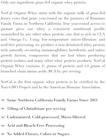 NorCal Organic – Classic Whey Protein – 100% Grass-Fed and Grass-Finished – UNFLAVORED – Lecithin-Free – 2lb Bulk