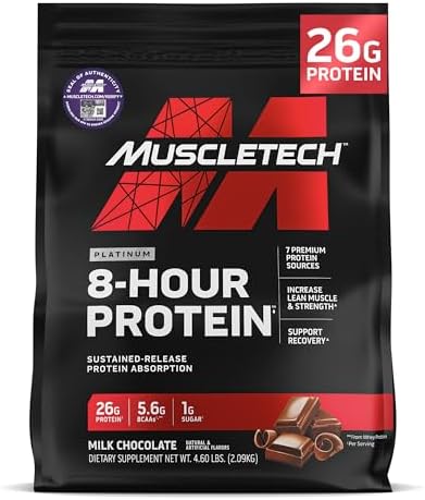 • MuscleTech Platinum 8-Hour Protein Powder – 7 Premium Protein Sources with Whey & Casein Protein for Increased Lean Muscle, Strength & Improved Recovery – Milk Chocolate, 50 Servings