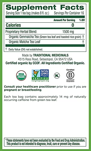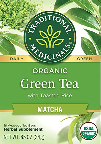 Traditional Medicinals Tea, Organic Green Tea Matcha, Genmaicha, Supports Health, 16 Tea Bags (6 Pack)